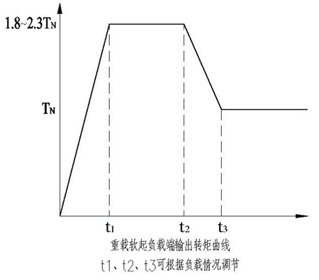 t2~t3時間段:負載加速至額定轉(zhuǎn)速后,輸出轉(zhuǎn)矩將至額定轉(zhuǎn)矩。