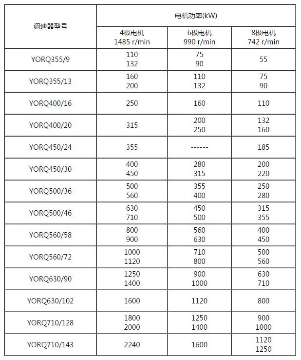 表2 YORQ短系列永磁耦合調(diào)速器與匹配電動機功率對照表